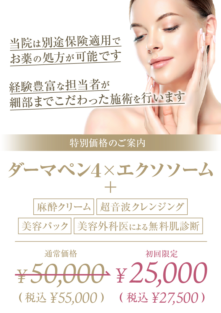 当院ではスキンケアといった治療でない部分、保険診療から自費診療まで幅広く治療のご提供をしております。