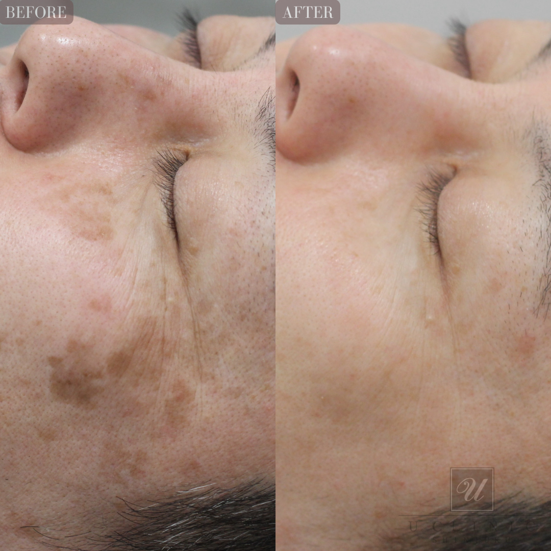 一回一回の治療効果はQスイッチレーザーには及ばないですが、ダウンタイムは非常に短く回数を重ねることで効果が発揮される治療となります。全顔への治療です。