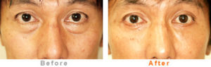 目の下に溜まっている脂肪を取り除き、余分な皮膚を切り取りたるみを改善します。