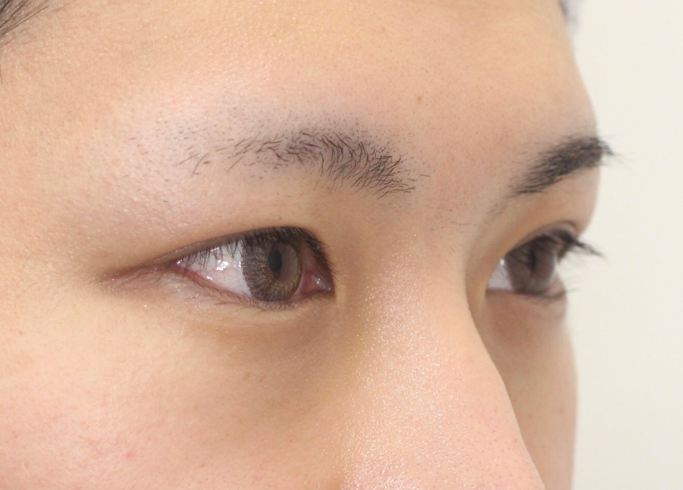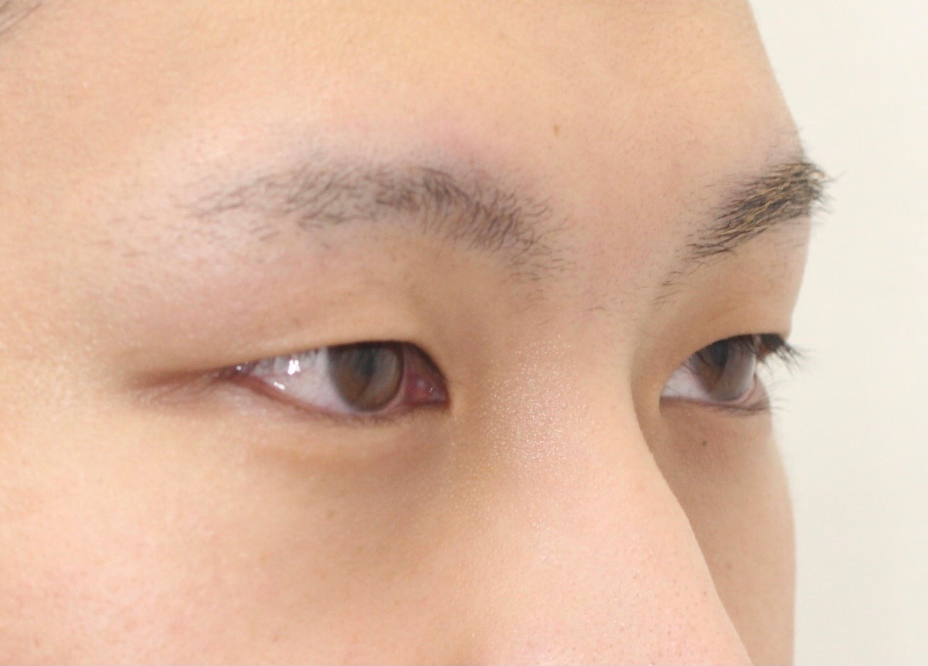 ダウンタイム中は腫れや傷の硬さの影響で二重のラインの左右差や不安定さが生じます。腫れや硬さが落ち着き、早い方で完成は3か月後となりますが、6か月程度かかる場合もあります。