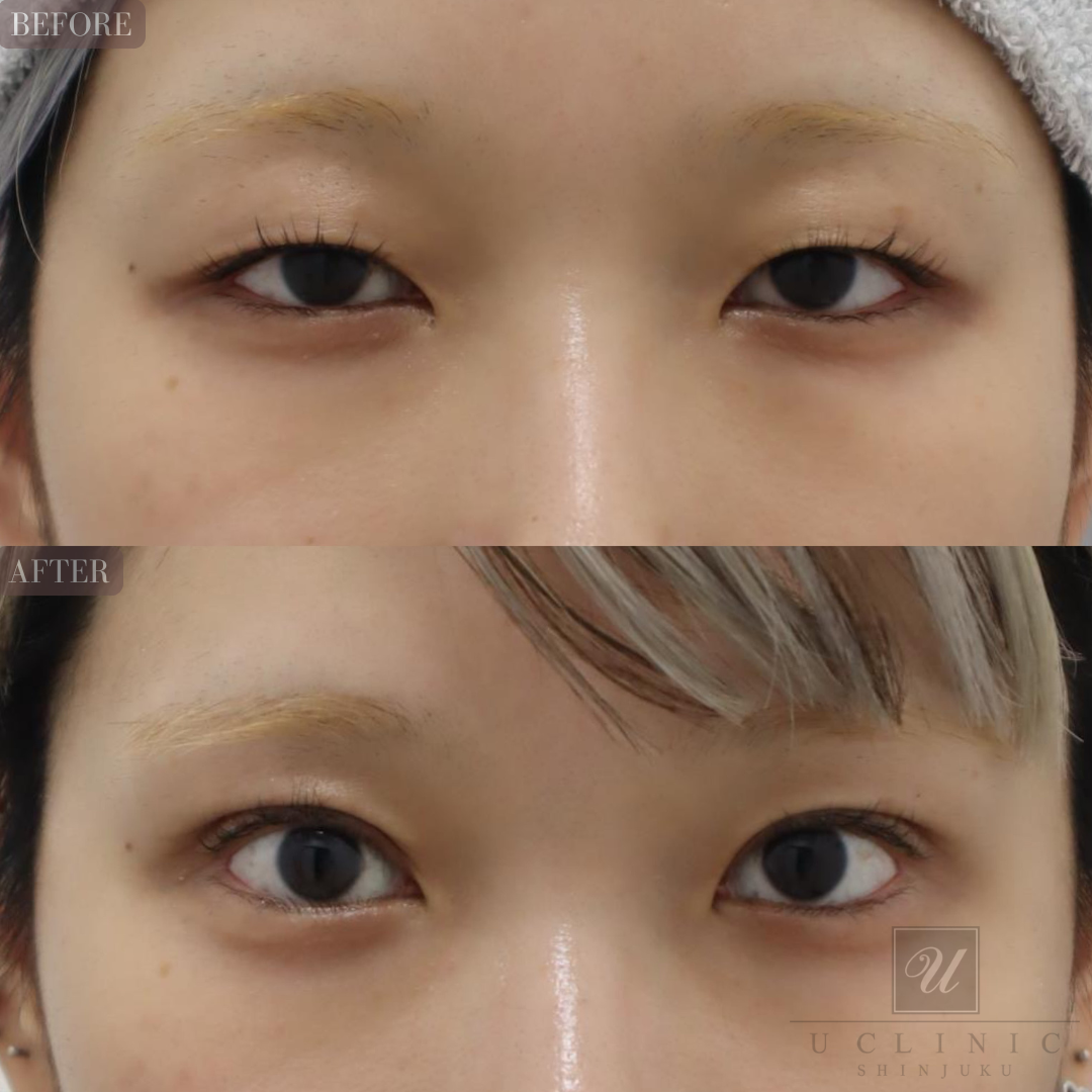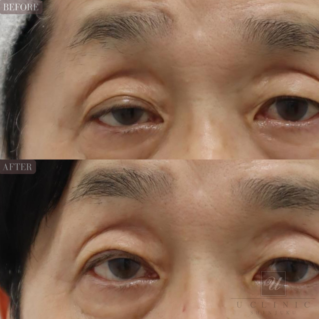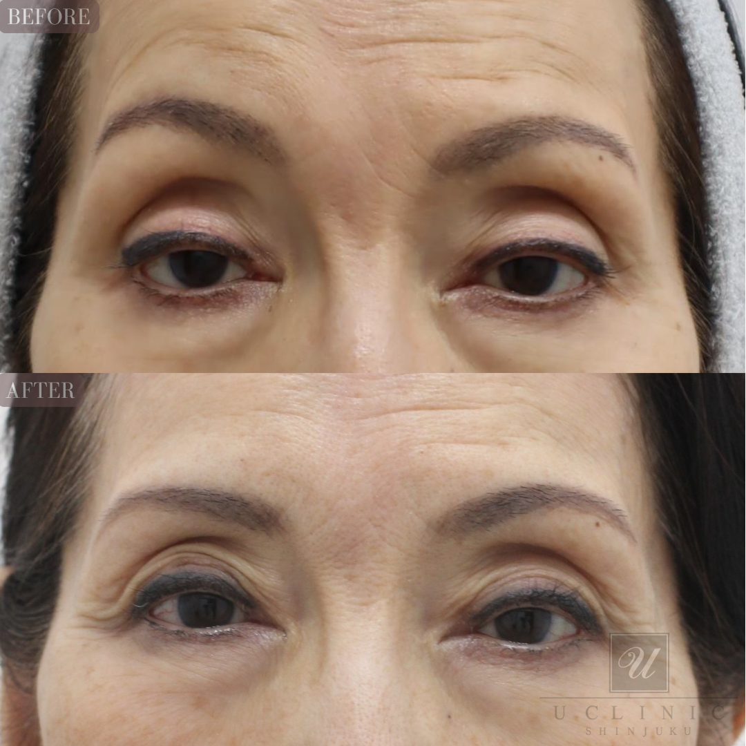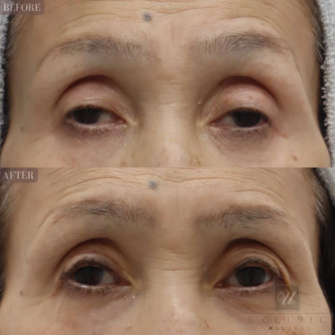 また、見た目の変化としてはおでこのしわが改善、黒眼の見える範囲も広がり、術前と比較し若々しい印象になります。