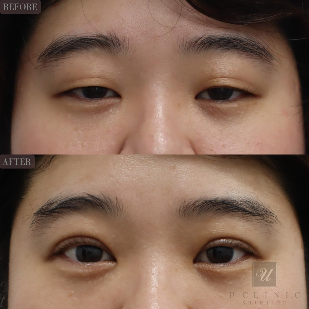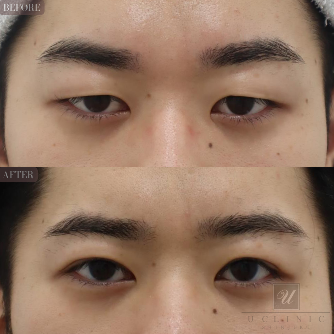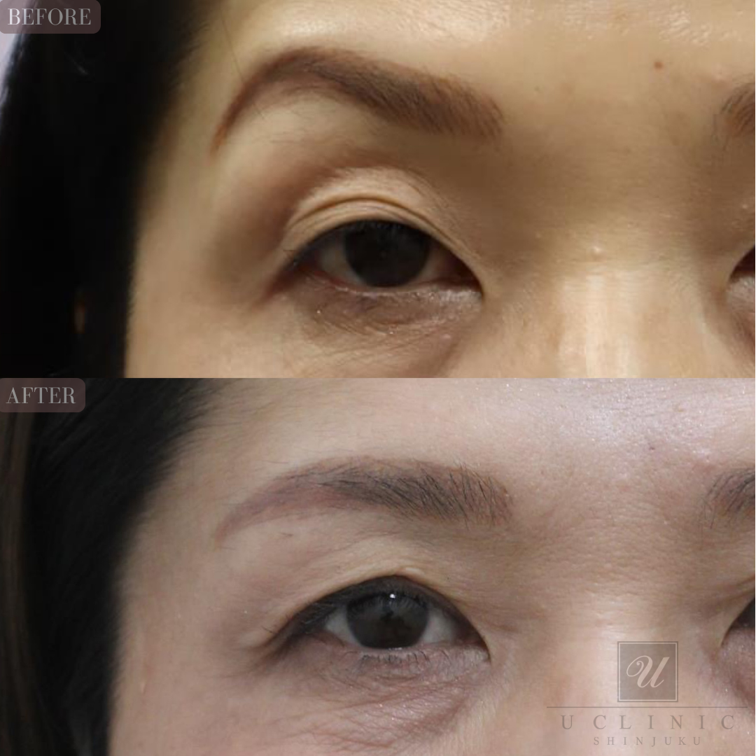 また、見た目の変化としてはおでこのしわが改善、黒眼の見える範囲も広がり、術前と比較し若々しい印象になります。