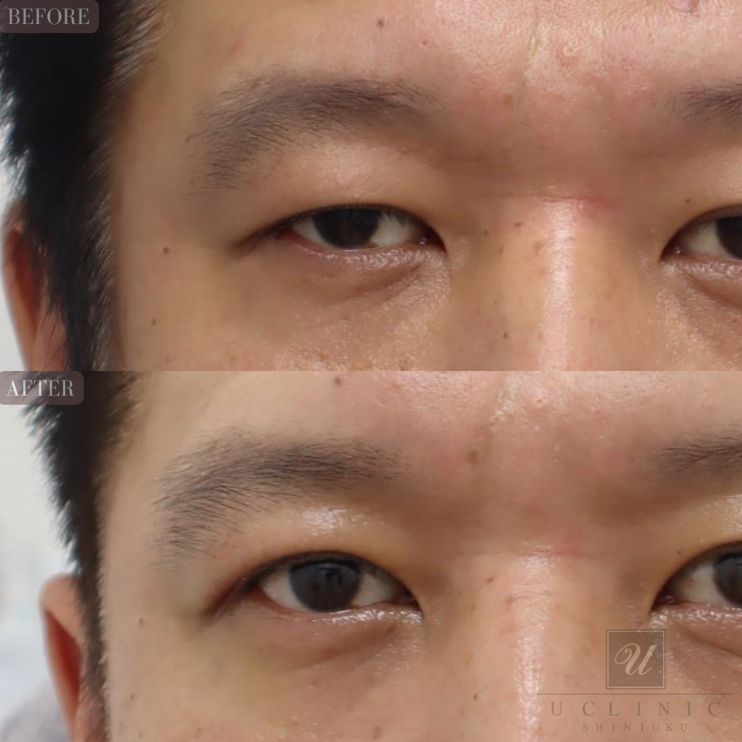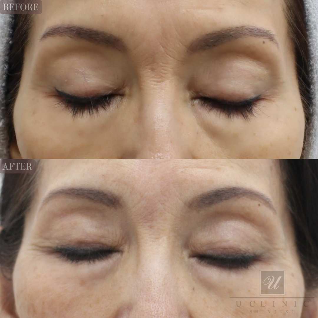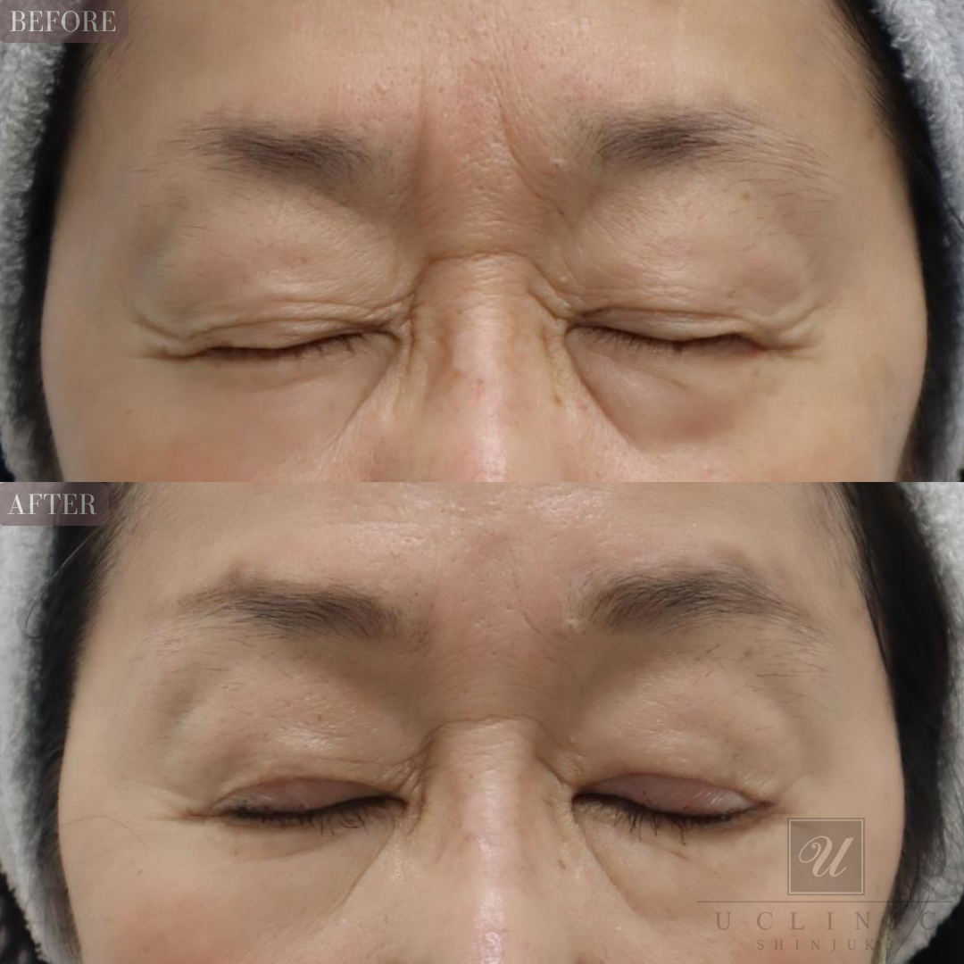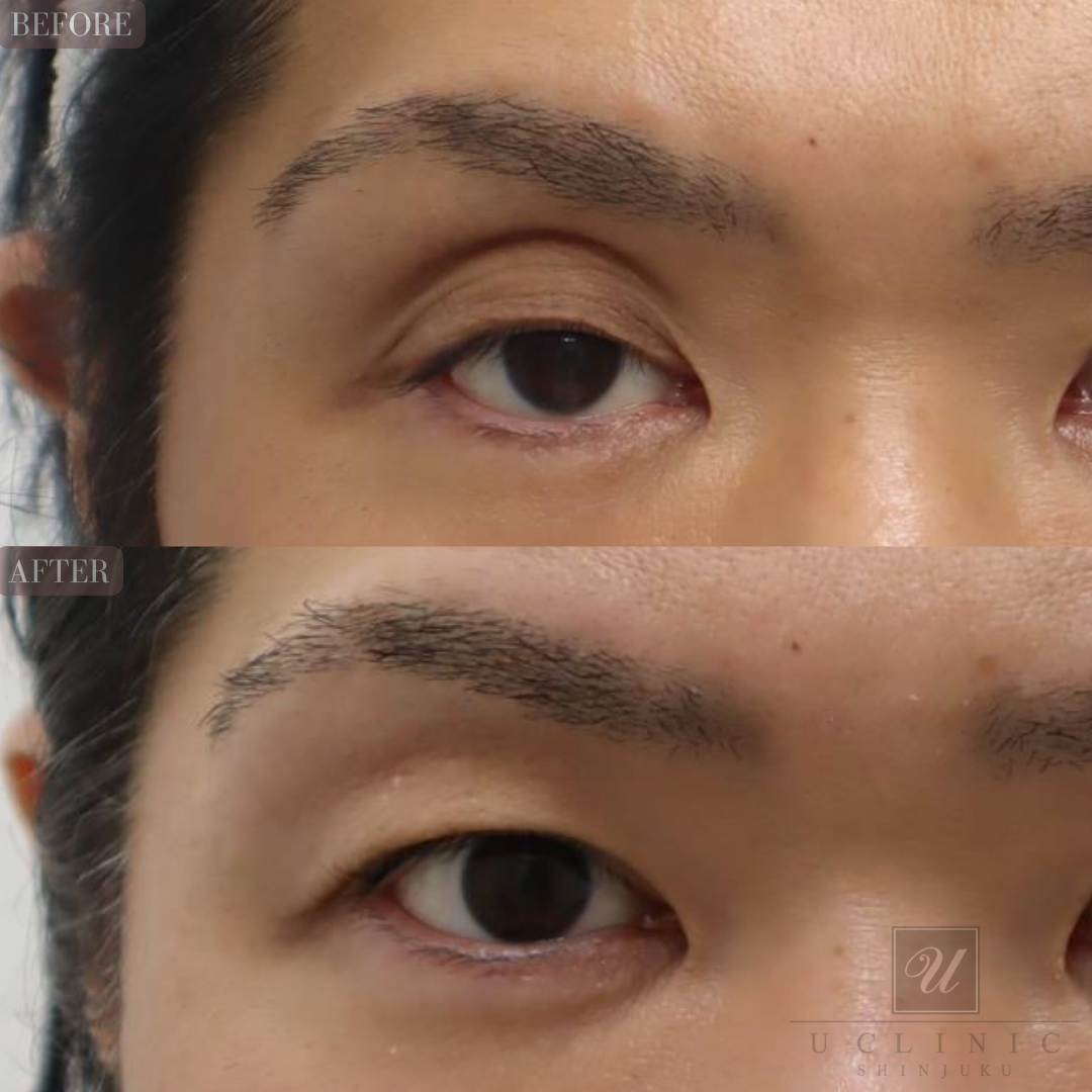 また、見た目の変化としてはおでこのしわが改善、黒眼の見える範囲も広がり、術前と比較し若々しい印象になります。
