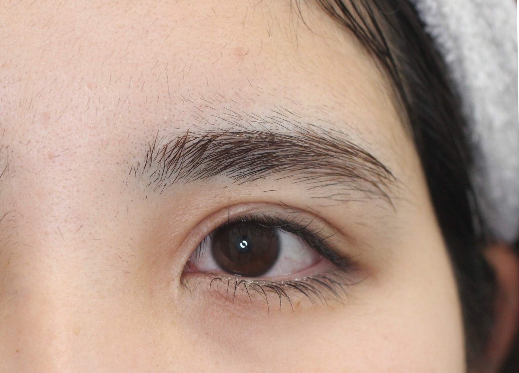 また、眼のチカラだけで眼を開くようになったことで眉の上りが改善され、睫毛の向きも変わりました。